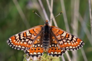 Değişik formda güzel bir Anadolu Melikesi (Melanargia larissa). Emeklerine sağlı