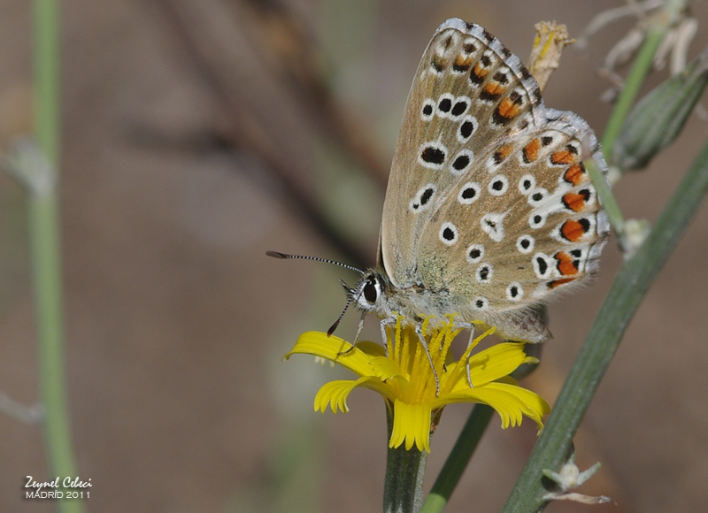 | Bu çokgözlüye saçaklarda çilleri ve ön kanat altındaki küçük benek yapıları farklı olmasa çokgözlü mavi dişi birey der geçerdim.